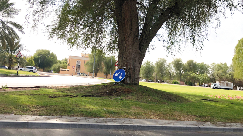 تعرضت إحدى اللافتات المرورية بأحد الطرق بمنطقة العامرية في العين لحادث، وتالياً تم رميها في وسط الطريق، ووضعها على جذع شجرة ما يشوه المنظر الجمالي للمكان، إذ إن هذه اللافتة قابعة تحت الشجرة منذ أسبوعين، دون أن يتم الالتفاف إليها من قبل الجهات المعنية. لذا أناشد تلك الجهات صيانتها.