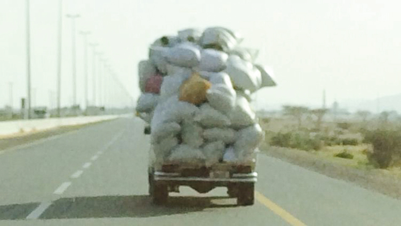 يعمد بعض سائقي الشاحنات إلى وضع حمولات تزيد على المحددة قانوناً، من دون مراعاة للأنظمة والقوانين المرورية، الأمر الذي قد يؤدي في حال سقوطها إلى حوادث مرورية.