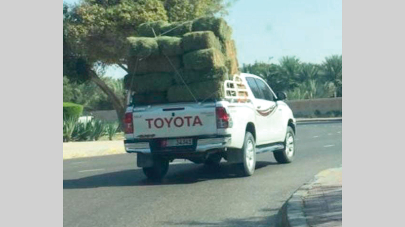 يتكرر على الطرقات بين فترة وأخرى مشهد لسائقين يقودون مركباتهم من دون مبالاة بالأنظمة المرورية، إذ قام السائق بوضع حمولة كبيرة على المركبة، ما يشكل خطراً وإرباكاً للسائقين الآخرين، إذ نرى في الصورة أن السائق وضع حمولة من الحشائش في صندوق مركبته، وهو يسير بها في منطقة مساكن بالعين، لذا أناشد الجهات المعنية، و«مرور العين»، بوضع حل لهذه التصرفات غير القانونية.