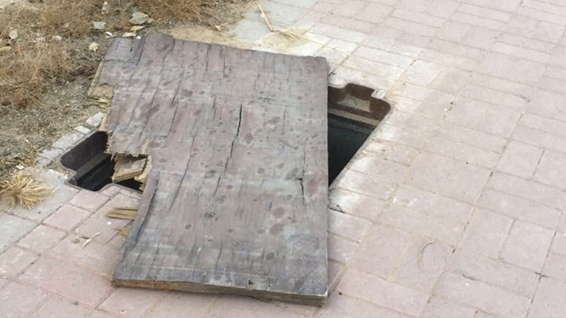 نعاني نحن سكان منطقة هيلي في العين، وتحديداً بالقرب من مدرسة العين، وجود فتحة تصريف مغطاة بلوح خشبي، ما يشكل خطراً على الأطفال والمارة.