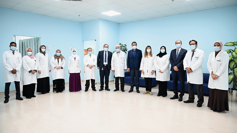 أطباء جامعة الشارقة خلال تدشين العيادة الافتراضية. من المصدر