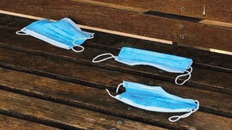 يلقي بعض الأفراد الكمامات بعد تمضية أوقاتهم في المتنزهات، خارج حاويات القمامة المنتشرة في كل مكان.