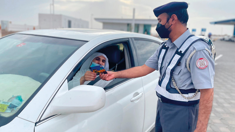 «مرور العين» وزّعت منشورات توعية وهدايا رمزية على السائقين. من المصدر