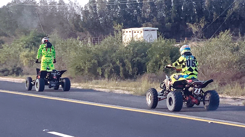 يتعمد بعض سائقي الدراجات النارية السير على الطرقات الرئيسة، خصوصاً الطرق القريبة من الكثبان الرملية، غير آبهين بالمركبات الأخرى.