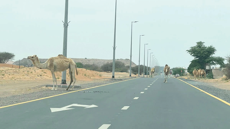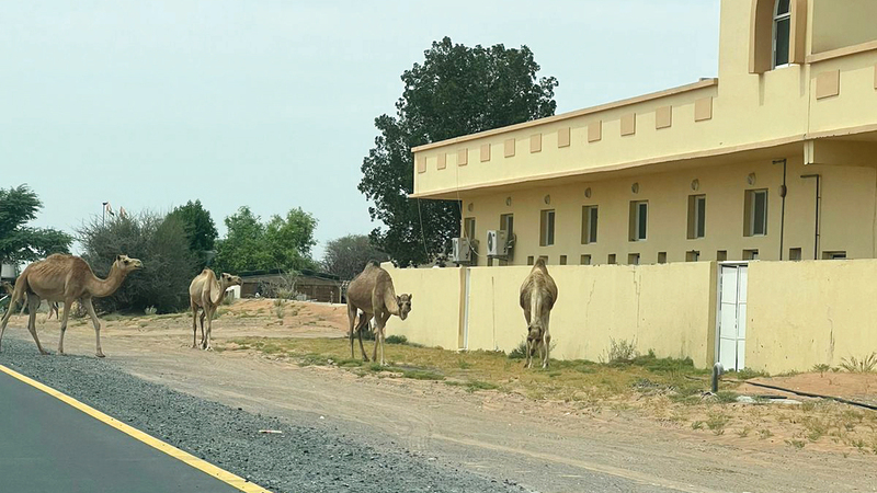 يعاني سكان بمنطقة المدام في الشارقة وجود جمال سائبة ترعى بين المساكن وتسير على الطرق الفرعية والرئيسة، إذ تقتات على المزروعات الموجودة أمام واجهات المساكن، وتعبث بحاويات النفايات وتبعثرها، ما يؤدي إلى إزعاج السكان، كما أنها تشكل خطراً على السائقين، لذا نناشد المسؤولين في الجهات المعنية توعية أصحاب الجمال بعدم تركها ترعى دون راعٍ.