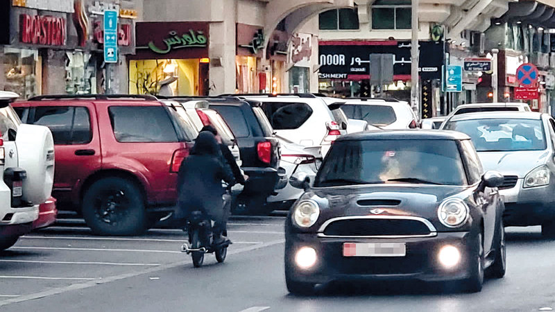 دراجة كهربائية تزاحم المركبات، بينما يسير بها سائقها عكس اتجاه السير، مستغلاً عدم وجود رقيب، ومضيفاً إلى مخالفاته المرورية، مخالفة أخرى تنم على عدم المبالاة.