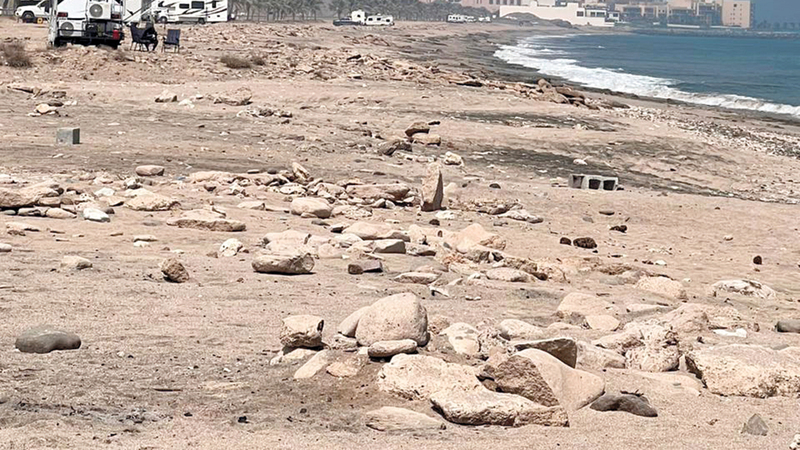 انتشار أحجار وصخور على الشاطئ قد يعوق حركة المرتادين، ويضر - في الوقت نفسه - بالمظهر الجمالي العام، لذا يرجى من الجهات المعنية في إمارة الفجيرة، النظر في الأمر والعمل على إزالة الأحجار وتنظيف الشاطئ، للمحافظة على جماله وحماية البيئة البحرية من مخلفات ونفايات قد تتجمع بين هذه الأحجار، خصوصاً في فصل الشتاء.