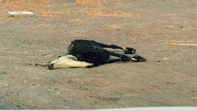 نلاحظ سلوكاً غير حضاري، يقوم به بعض ملّاك العزب، يتمثل في رمي جيف المواشي على الطريق دون الاتصال بالجهات المعنية التي توفر خدمات لنقل هذه الجيف، ونرى في الصورة رمي هذه الجيفة عند الجسر القريب من محطة بترول أدنوك في العين، لذا نناشد الجهات المعنية النظر في مثل هذا الأمر. القارئ: (أبونايف)
