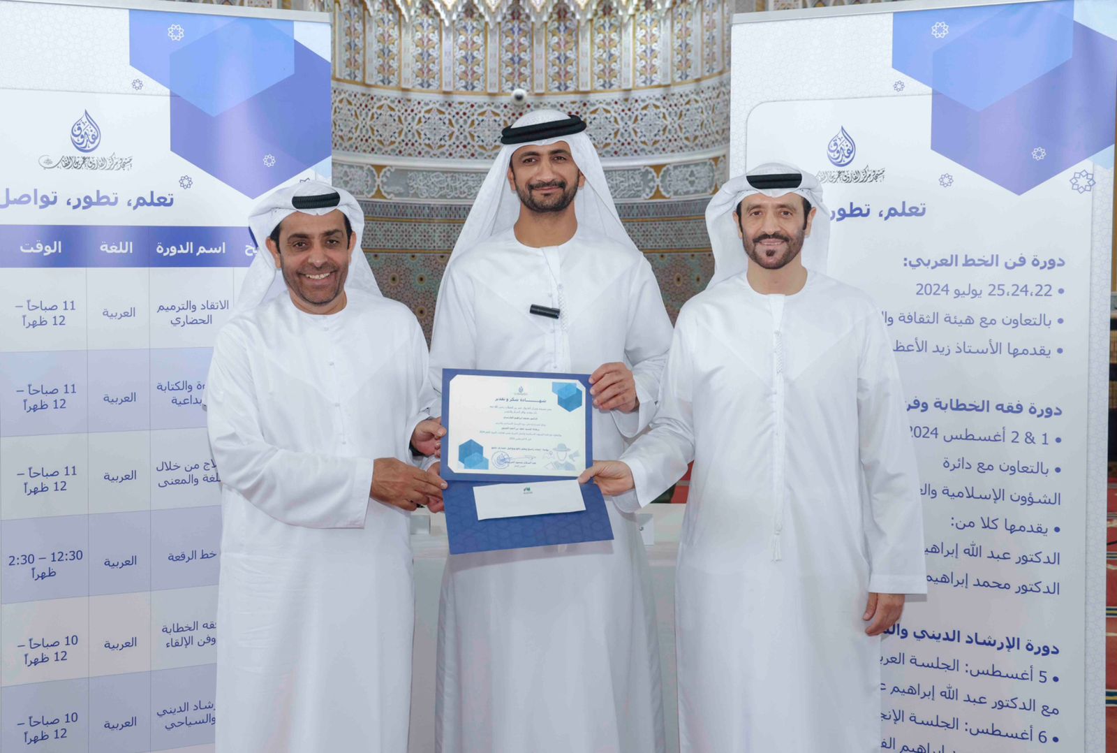 ‎وفي الختام ، نُظمت “دورة الإرشاد الديني والسياحي” بالتعاون مع دائرة الشؤون الإسلامية والعمل الخيري بدبي يومي 5 و 6 أغسطس، بمشاركة 120 فرداً، وهدفت إلى تزويد المشاركين بالمهارات اللازمة لإرشاد الجولات الدينية والتاريخية بدقة وجاذبية. قسمت الدورة إلى جلستين: الأولى باللغة العربية بقيادة الدكتور عبد الله إبراهيم، والثانية باللغة الإنجليزية بقيادة الدكتور محمد الفارسي. أعرب المشاركون عن حماسهم الكبير للدورة، مشيرين إلى أنها زودتهم برؤى معلومات دقيقة وجذابة عن المواقع الدينية والتاريخية، وبتقنيات قيمة لتعزيز السياحة الثقافية والدينية في دبي.