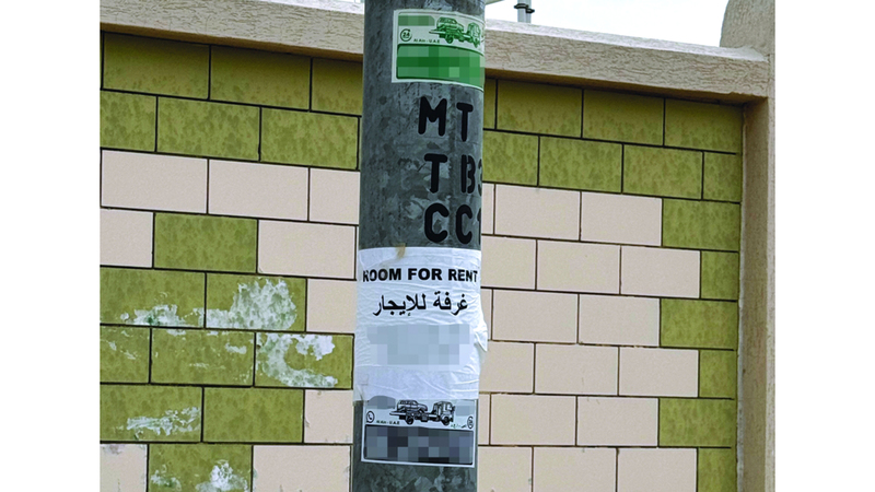 تشوّه ملصقات إعلانية على أعمدة الإنارة واللافتات الإرشادية بالطرق، المظهر الحضاري والجمالي لطرق الدولة، حيث يستغلها المعلنون لوضع إعلاناتهم بطريقة مخالفة حتى لا يلتزموا بدفع الرسوم المطلوبة.. وتوثق الصورة إعلاناً عن شقة للإيجار، وآخر يوفر خدمة نقل السيارات (ريكافري) بمنطقة المعترض في العين.