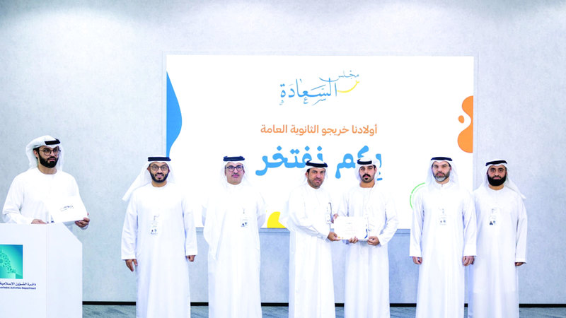 نظّم مجلس السعادة بدائرة الشؤون الإسلامية والعمل الخيري في دبي حفلاً تكريمياً بمسرح الدائرة في الممزر، بحضور مدير عام الدائرة، أحمد درويش المهيري، احتفاء بخريجي الثانوية العامة من أبناء وبنات موظفي الدائرة، تقديراً لإنجازهم الدراسي، وتعزيزاً لقيم التقدير الأسري والارتباط المجتمعي، ويأتي الاحتفاء في إطار حرص الدائرة على ترسيخ بيئة عمل محفزة، تُعلي مكانة الأسرة، وتدعم استقرارها، انسجاماً مع أهداف عام 2025 الذي أعلنته القيادة الرشيدة «عام المجتمع».