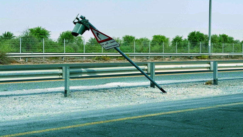 تتعرّض اللافتات الإرشادية لحوادث مرورية عابرة في معظم الأحيان، سواء على الطرق الرئيسة أو الفرعية، ووجودها بهذا الشكل من دون أن يتم إصلاحها لفترة معينة من الوقت يشوه المنظر الحضاري، إذ إن هذه اللافتة الواقعة في موقف الشاحنات على طريق دبي- العين، وتحديداً بمنطقة مرقب في دبي، تتعرض لحوادث اصطدام بين فترة وأخرى، جراء وجود الشاحنات في هذا الموقف بكثرة، لذا يقترح قراء وضع حاجز حديدي حول اللافتة، يمنع الاصطدام الدائم بها من الشاحنات.