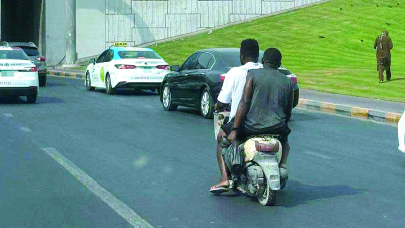 يعاني سائقو مركبات قيادة البعض لدرّاجات نارية غير مرخصة على الطرقات العامة، مسببين ارتباكاً كبيراً، إذ نرى في الصورة قيام شخصين بقيادة دراجة على أحد الطرق في الشارقة بشكل فيه استهتار بالسلامة والقواعد المرورية، لذا نطالب الجهات المعنية بتغليظ العقوبات على مثل هذه التصرفات، والقيام بحملات مرورية للقضاء عليها.