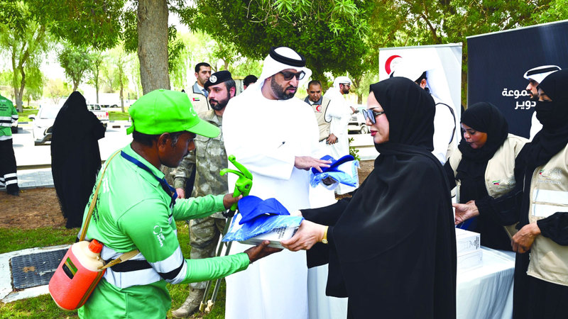 «المبادرة» تضمنت توزيع حقائب ومستلزمات للعمال. وام