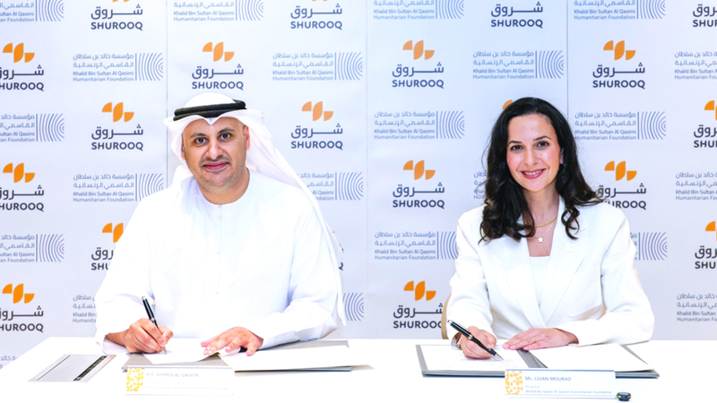 مذكرة التفاهم وقّعتها «شروق» ومؤسسة خالد بن سلطان القاسمي الإنسانية. وام