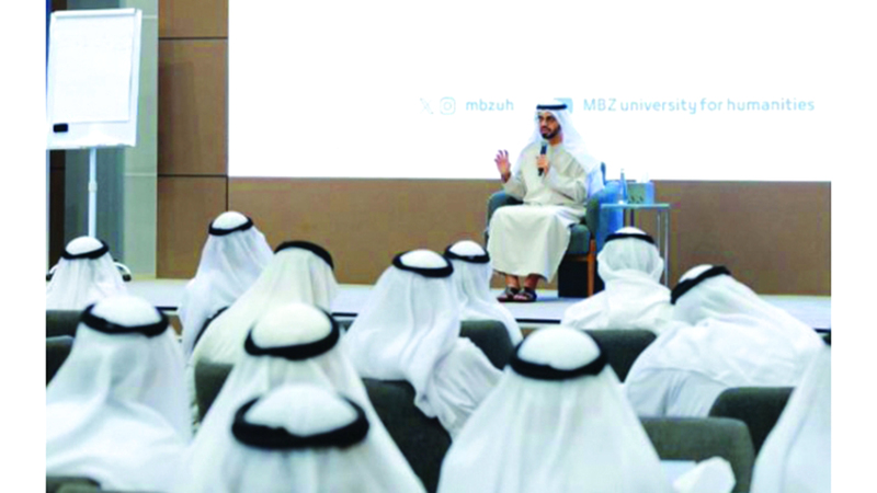 الدرعي خلال زيارته جامعة محمد بن زايد للعلوم الإنسانية. وام