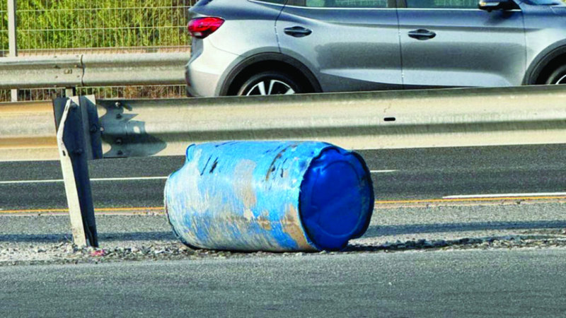 يعاني قراء يرتادون استراحة الشاحنات في منطقة مرغم سقوط أغراض من الشاحنات بشكل شبه دائم، ما يشوّه المنظر العام والطريق، مثل الموضح في الصورة، حيث سقط برميل على طرف طريق العين - دبي، مقترحين وضع لافتات تنبيهية لسائقي الشاحنات، لعدم وقوع مثل هذه الحمولات على الطريق.