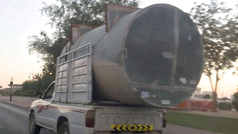 أبدى قراء استغرابهم وضع سائقين حمولات فوق الحد القانوني في المقصورة الخلفية من المركبة، كما في الصورة، إذ قام السائق بوضع خزان كبير فوق حيز المركبة بصورة تشكل خطراً على مستخدمي الطريق، وهذا الأمر يُعد مخالفاً، وتمنوا أن يتم تغليظ العقوبات لمنع مثل هذه التصرفات.