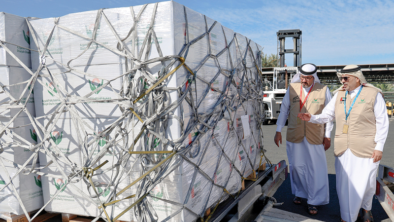 وأقلعت طائرة المساعدات الإغاثية من مطار الشارقة الدولي إلى مطار العريش، حاملة شحنة المساعدات التي أسهمت الجمعية في توفيرها، حيث تركز الجمعية في هذا الإطار على دورها المباشر في دعم الجهود الإغاثية، وتسخير إمكاناتها لتلبية الاحتياجات الأساسية للأسر المتضررة.