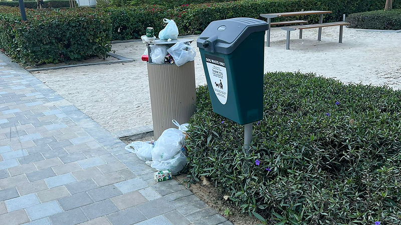 رصد روّاد لحديقة أرجان، القريبة من مستشفى ميديكلينك باركفيو، في دبي، سلوكاً غير حضاري يقوم به البعض، ويتمثّل في رمي الأكياس البلاستيكية والنفايات، مثلما هو موضح في «اللقطة» بجوار الصندوق المخصص لها، في مشهد يؤذي زوّار هذه الوجهة ويشوه المنظر الجمالي لها.