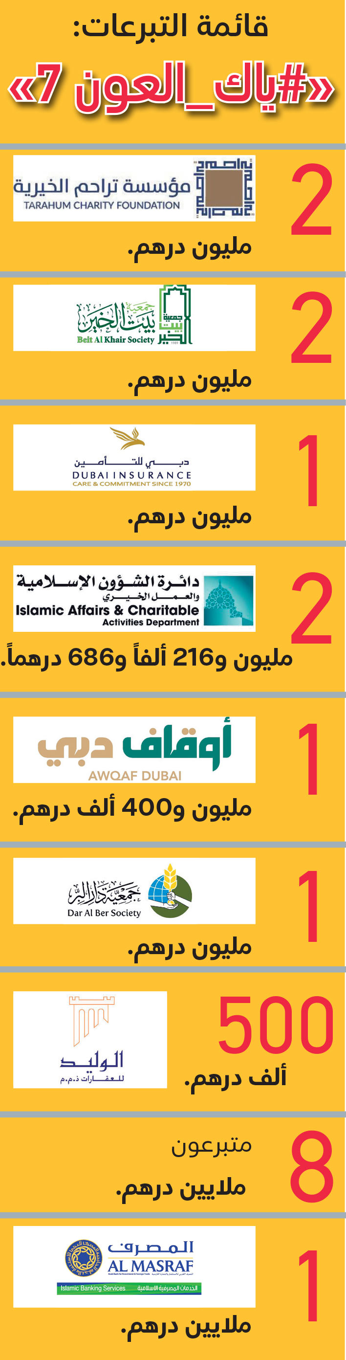 3 ملايين درهم من «المصرف العربي» وفاعل خير لـ «ياك العون 7»