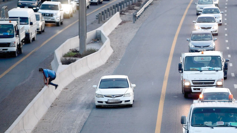 يلاحظ البعض قيام أفراد بعبور الطريق والمنصفات، في تصرفات خطرة تتكرر في عدد من طرق الدولة، ما يعرّضهم لمخاطر، ويربك الآخرين، من خلال هذه التصرفات التي تعد من مسببات حوادث الدهس، وكما هو موضح في اللقطة، يحاول هذا الشخص الذي نزل من مركبة على كتف الطريق عبور الحاجز الخرساني، لذا يناشد قراء الجهات المعنية مخالفة من يعبر الطريق من غير المكان المخصص، لتفادي وقوع حوادث دهس.