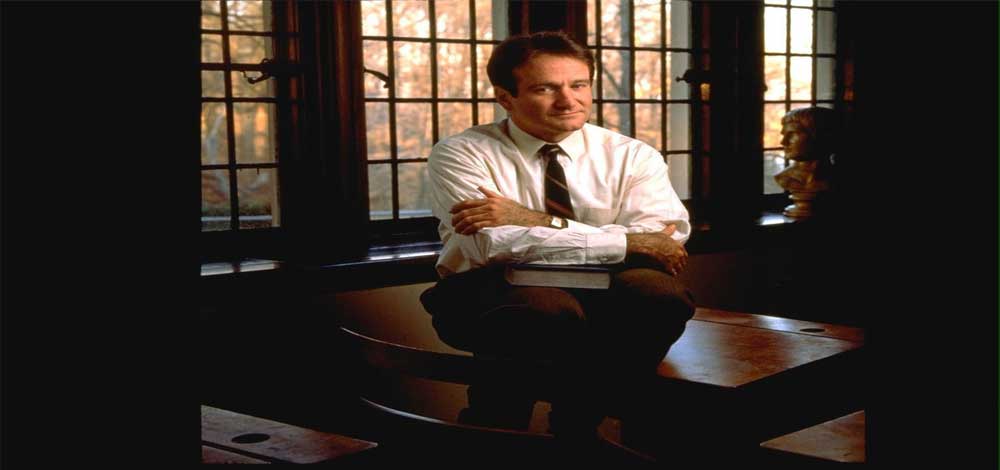 الممثل "روبن وليامز" في فيلم "جمعية الشعراء الموتى" عام 1989 - إ ب أ
