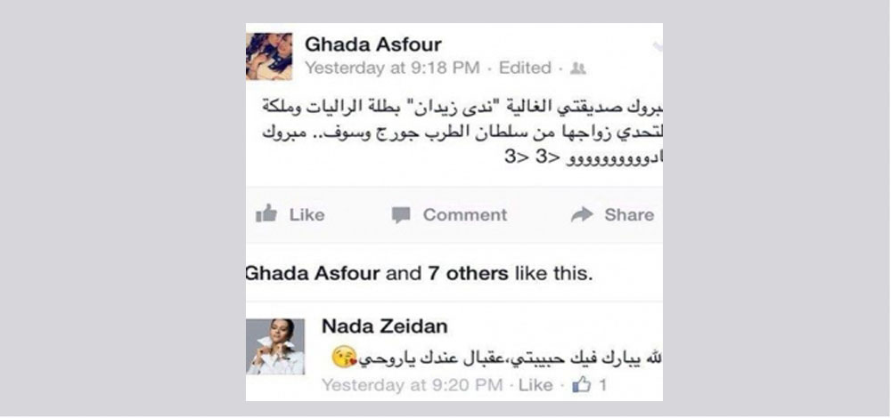 ونشرت المواقع صورة عن التهاني التى وجهت للعروس على صفحتها عبر "فيس بوك " وتأكيد ندى زيدان زواجها من "سلطان الطرب".