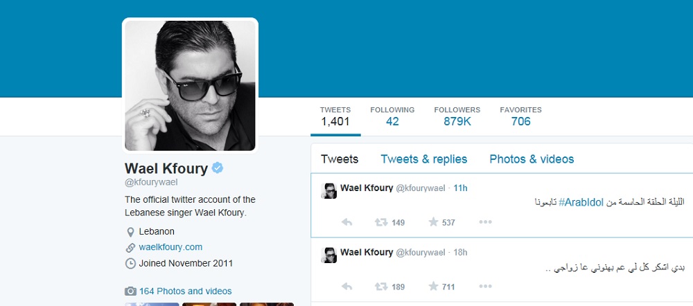 بعدما تداولت عدد من التقارير الصحفية مؤخرًا خبر زواج النجم اللبناني وائل كفوري للمرة الثانية، من ملكة جمال الشرق الأوسط، المغربية أحلام حجي ونفي مدير أعماله لهذه الأخبار، عاد كفوري لإثارة الجدل حول هذا الموضوع بعدما كتب عبر حسابه الشخصي بموقع التواصل الاجتماعي"تويتر" تغريدة قصيرة قال فيها "بدي أشكر كل لي عم بهنوني عا زواجي"، ليثير بذلك دهشة متابعيه، حيث لم يوضح الموضوع الذي يقصده خاصة انه متزوج ولديه فتاة، ولكن يبدو أنه يرد على شائعة زواجه الاخيرة. كما أن جمهور وائل الكفوري لم يأخذ تغريدته على محمل الجد واعتبره يتقصد إثارة الجدل والسخرية من انتشار خبر زواجه.