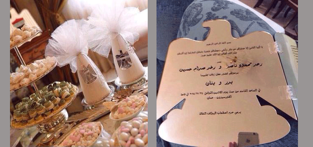 وكشفت حفيدة صدام، عن بطاقة عرسها الكبيرة على هيئة الشعار الجمهوري المعتمد في عهد جدها .