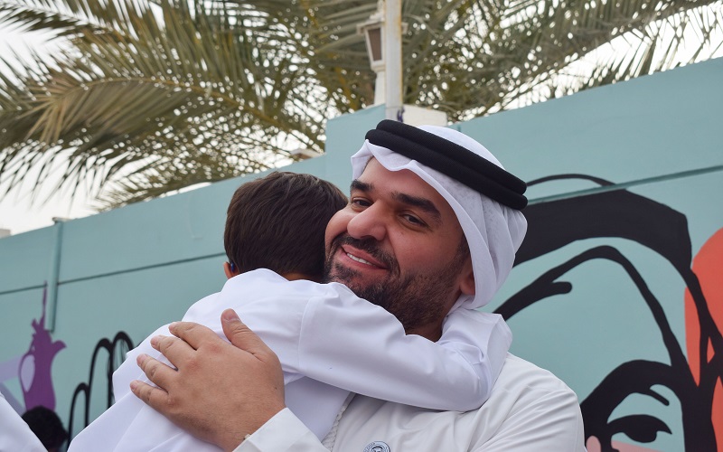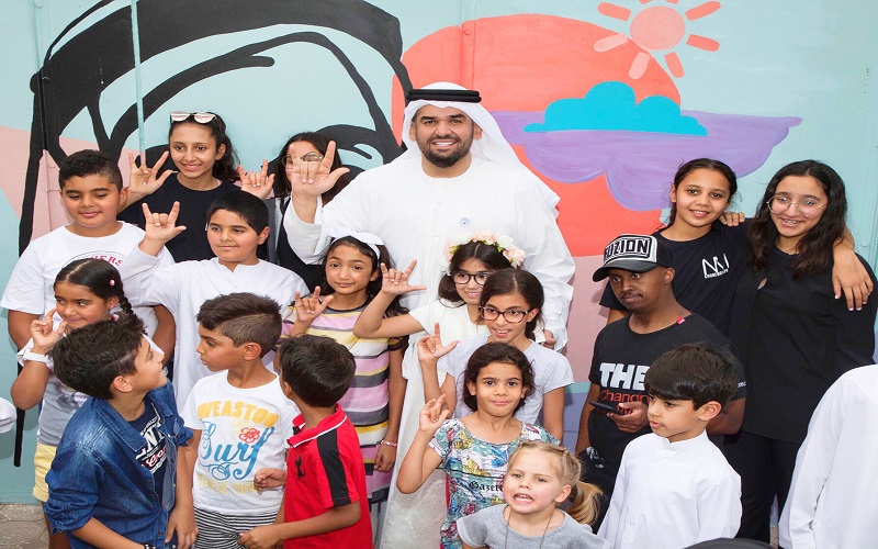 بالصور..حسين الجسمي يزور ويقرأ قصص لأطفال أصحاب همم