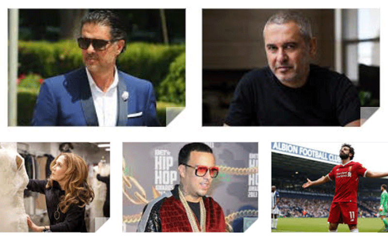 وتضم القائمة 5 فئات: المطربون والممثلون، والمخرجون ومصممو الأزياء ولاعبو كرة القدم.