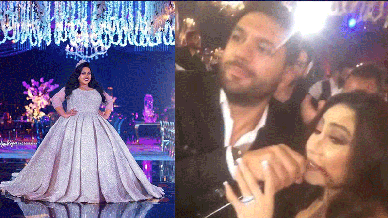 بالصور.. ممنوع تقبيل العروس في زفاف شيماء سيف