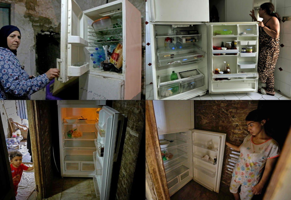 مصورو وكالة فرانس برس التقط صوراً صادمة لبرادات شبه فارغة داخل منازل في مدن رئيسية هي بيروت وجونية وجبيل وطرابلس شمالاً وصيدا جنوباً، تأثر أصحابها بتداعيات الأزمة وبتدهور الليرة.