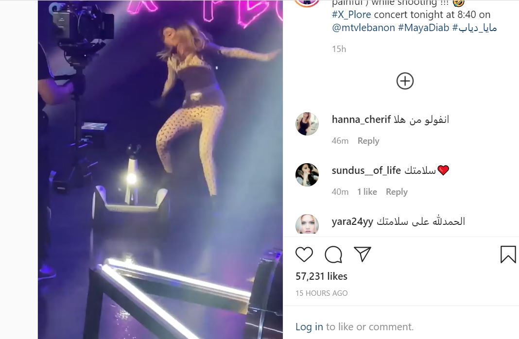 فيديو.. مايا دياب تسقط بقوة عن «سكوتر» في كواليس حفل غنائي