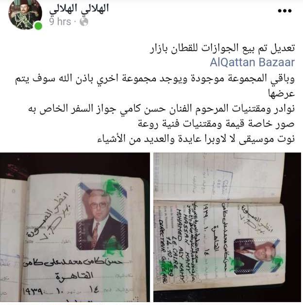 مقتنيات الفنان حسن كامي المسروقة تباع على منصات التواصل الاجتماعي