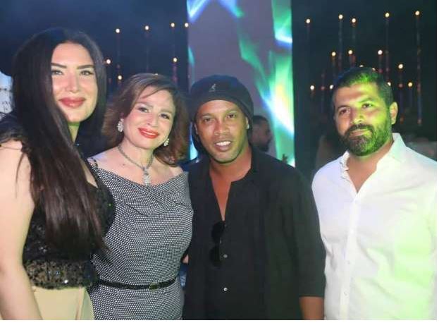 عبير صبري وإلهام شاهين مع رونالدينيو في بيروت