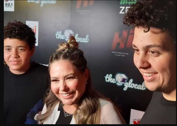 اصطحبت ابنيها أثناء حضورها العرض الخاص لفيلم «عروستي» الذي تشارك فيه.