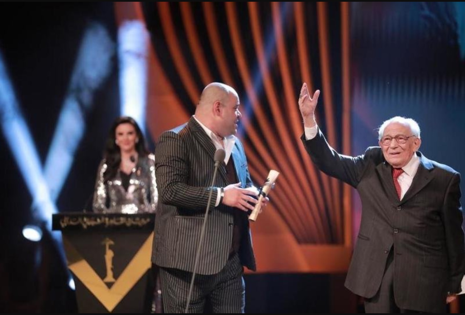 وظهر أيضاً الفنان رشوان توفيق بشكل مفاجئ في حفل ختام مهرجان القاهرة السينمائي، وصعد على المسرح لتقديم جائزة أفضل ممثل، والتي حصل عليها الفنان محمد ممدوح، وعبر عن سعادته لتواجده وتقديم الجائزة لفنان يحبه، وقبل محمد ممدوح رأس رشوان توفيق على المسرح، وسط تصفيق حاد من الحضور، وأعجب الجمهور بحضور رشوان توفيق، والذي اعتبره البعض بمثابة تكريم له بعد أزمته الأخيرة مع ابنته وكسبه تعاطف كبير من الجمهور.
