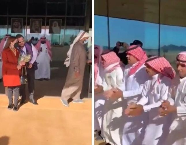 وأظهر مقطع الفيديو، تقديم رقصة تقليدية فور وصول ماجدة الرومي،، حيث اصطف شباب سعوديين من ناحية اليمين واليسار وبدأوا بالرقص، حسب ا"المرصد".