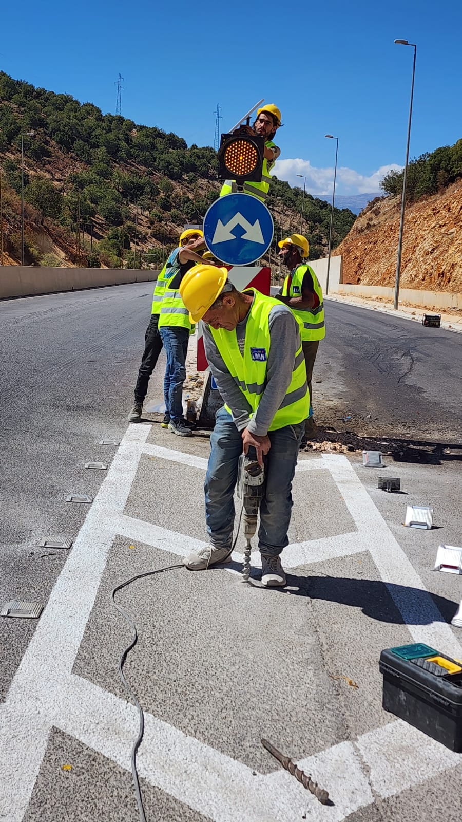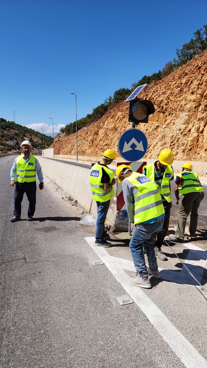 أعيد تأهيل الطريق ووضعت إنارة وعاكس ضوء ولوحة على مسافة 200 متر لتحذير السائقين.