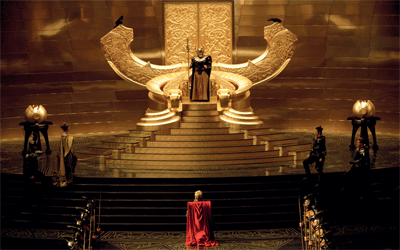 هذا يمضي بنا إلى البناء الأسطوري للشخصيات التي نشأنا عليها والخارجة من رحم «الكوميك»: سوبرمان، وبات مان، وسبايدر مان، والقائمة تطول، وأمام هذا الوجود الدائم لهذه الشخصيات في الذاكرة، والمحاولات الدائمة لبعثها من جديد من خلال الأجزاء المتوالية منها، ستكون هناك محاولات لخلق شخصيات أخرى، ولعل فيلم كينيث براناه Thor «ثور» المعروض حالياً في دور العرض المحلية يأتي من هذا المسعى، ولنكون أمام شخصية يتمركز حولها الفيلم، ويسخر في خدمتها كل ما هو متاح لتكون النتيجة فيلماً تجارياً يقدم الى كل ذي مطلب مطلبه، وخلطة عجيبة تكاد تكون بحراً متلاطماً من الخلطات المعدة سلفاً، فالفيلم اسطوري ومعاصر، وله أيضاً أن يجمع هاري بوتر مع سوبر مان، كما أنه فيلم غرامي كوميدي مأساوي ميلودرامي، ومسرحي أيضاً، الصفة الأخيرة التي عليها أن تحضر طالما الحديث عن مخرج مثل كينيث براناه صاحب «هاملت» وغيرها من مسرحيات شكسبير التي قدمها على الشاشة الكبيرة.