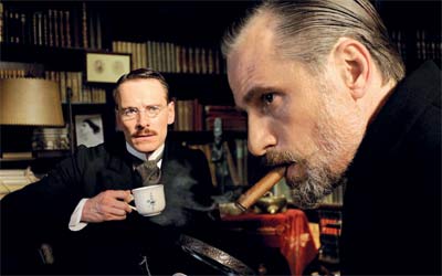 لكن قبل المضي مع هذا الفيلم، فهناك ما له أن يكون على اتصال بكروننبيرغ من خلال معالجته لهذا المنعطف التاريخي للتحليل النفسي، وتضمين فيلمه المحكم بناء درامياً قادراً على أن يكون مكثفاً بالقدر الكافي لتمرير كل ما هو على اتصال بتلك العلاقات التي تأسست في ظل تشكل التحليل النفسي، ومن ثم فإن كارل يونغ الذي انفصل عن أستاذه فرويد سيكون بحد ذاته حالة نفسية ملتبسة، كذلك الأمر بالنسبة لفرويد نفسه، ولعل هناك الكثير مما نعرفه عن يونغ وفرويد سنجده ماثلاً أمامنا في سياق الفيلم، دون أية تدخلات تكون من خارج قصة الفيلم.