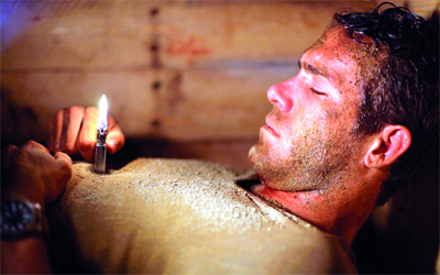 ما الذي ستفعله إن أفقت من إغماءة أو ما شابه ذلك ووجدت نفسك في تابوت مدفون تحت الأرض؟ الإجابة على الأرجح هي الموت، هذا ما لم تكن ميتاً أصلاً! طبعاً هذه إجابة تلغي كل ما يمكن أن نشاهده في فيلم Buried «مدفون» المعروض حالياً في دور العرض المحلية، والذي يمتد قرابة الساعة والنصف، إذ إن اكتشاف ذلك ومن ثم التخبط داخل التابوت لن يستغرق بضع دقائق ومن ثم ينتهي كل شيء، وبالتأكيد فإن الأمر سيكون عتمة بعتمة ولن نسمع إلا تخبط الضحية ومن ثم هدوء تام يقول لنا لقد لفظت الضحية أنفاسها.