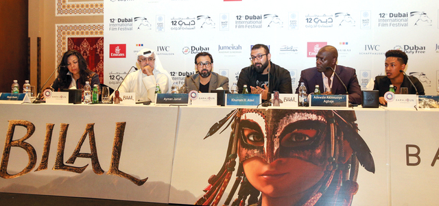 وعبر مؤتمر صحافي أداره المدير الفني للمهرجان، مسعود أمرالله، وشهد حضور رئيس المهرجان، عبدالحميد جمعة، حضر أيضاً إلى جانب المنتج السعودي أيمن جمال، كل من المخرج الباكستاني خورام علوي، والممثلان اللذان أديا صوتياً صوت (بلال)، وهما أديويلي أكينوي في نضجه، وجاكوب لاتيمور.