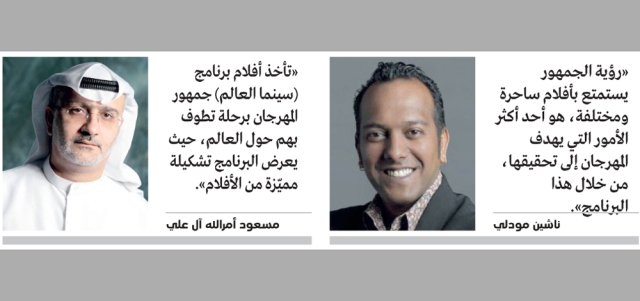 وستقدم «سينما العالم» للجمهور مجموعة واسعة من الأفلام المميزة النابعة من ثقافات مختلفة، والتي قد لا تسنح لهم الفرصة بمشاهدتها في دور السينما، في الظروف العادية، وفق ناشين مودلي، مدير برنامج «سينما العالم»، الذي أضاف «إن رؤية الجمهور يستمتع بأفلام ساحرة ومختلفة، هو أحد أكثر الأمور التي يهدف المهرجان لتحقيقها، من خلال هذا البرنامج».