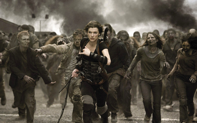 ويستمر الفيلم وتشتبك أليس أو يوفوفيتش في معارك تستخدم فيها الفنون القتالية اليدوية لكن لا يبدو أنها تحتفظ بلياقتها فيهرع زوجها لتغطية العيوب واستخدام اللقطات القريبة جداً والقطع الأسرع من غمزة العين، فلا نرى شيئاً مما يحدث لأن كل شيء مظلم أصلاً، ولا نرى الضوء إلا في ومضات سريعة جداً، وفجأة يهجم عليها زومبي فتقتله!