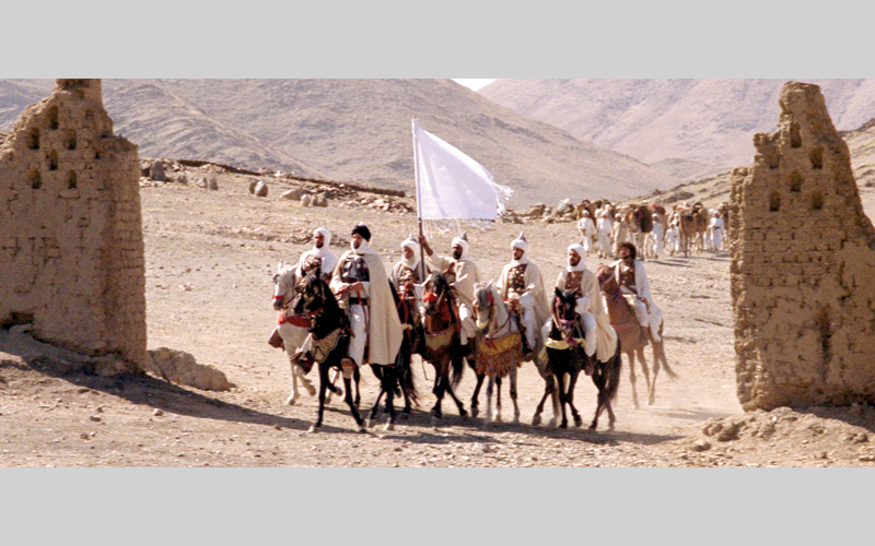 مشهد من النسخة الإنجليزية الرقمية لفيلم «الرسالة». من المصدر
