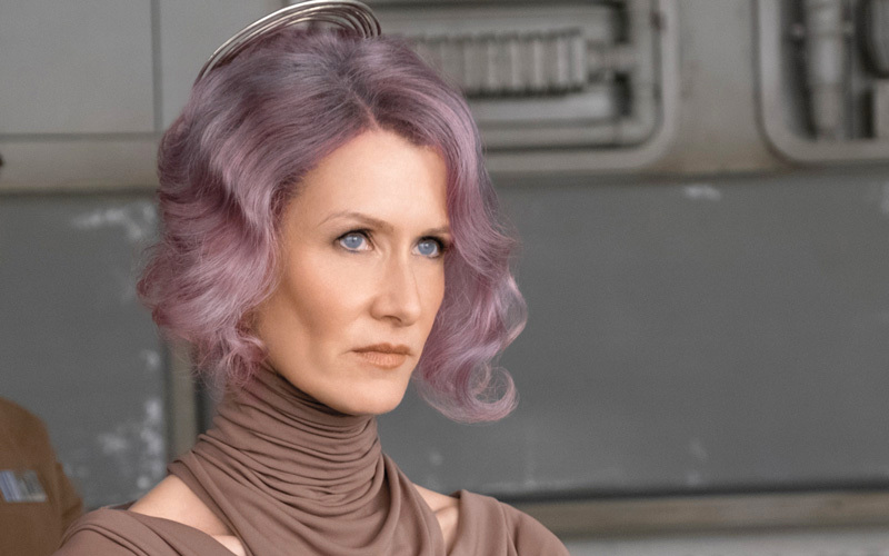لورا ديرن ممثلة قوية لشخصيات ذات طابع معين، تظهر هنا بشعر بنفسجي كإشارة للتيار النسوي Feminism (هوليوود لا تتوقف عن تسييس أفلامها، لمواكبة حركة المواقف السياسية التصحيحية التي أطلقها أوباما)، وطبعاً هذا أضعف أدوارها. الأسوأ منها بينيشيو ديل تورو، وهو مثلها قوي جداً لكنه غير مستغل إطلاقاً في هذا الفيلم، ولا يظهر سوى في مشهدين أو ثلاثة في منتهى التفاهة. أما آدم درايفر فهو أضعف شخصية شريرة في سلسلة حرب النجوم، واختياره للدور خطأ فادح.