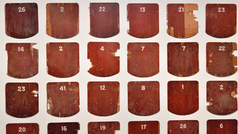 • المقاعد الخشبية، التي كان يجلس عليها رواد السينما قديماً، حوَّلها العطار عملاً فنياً.